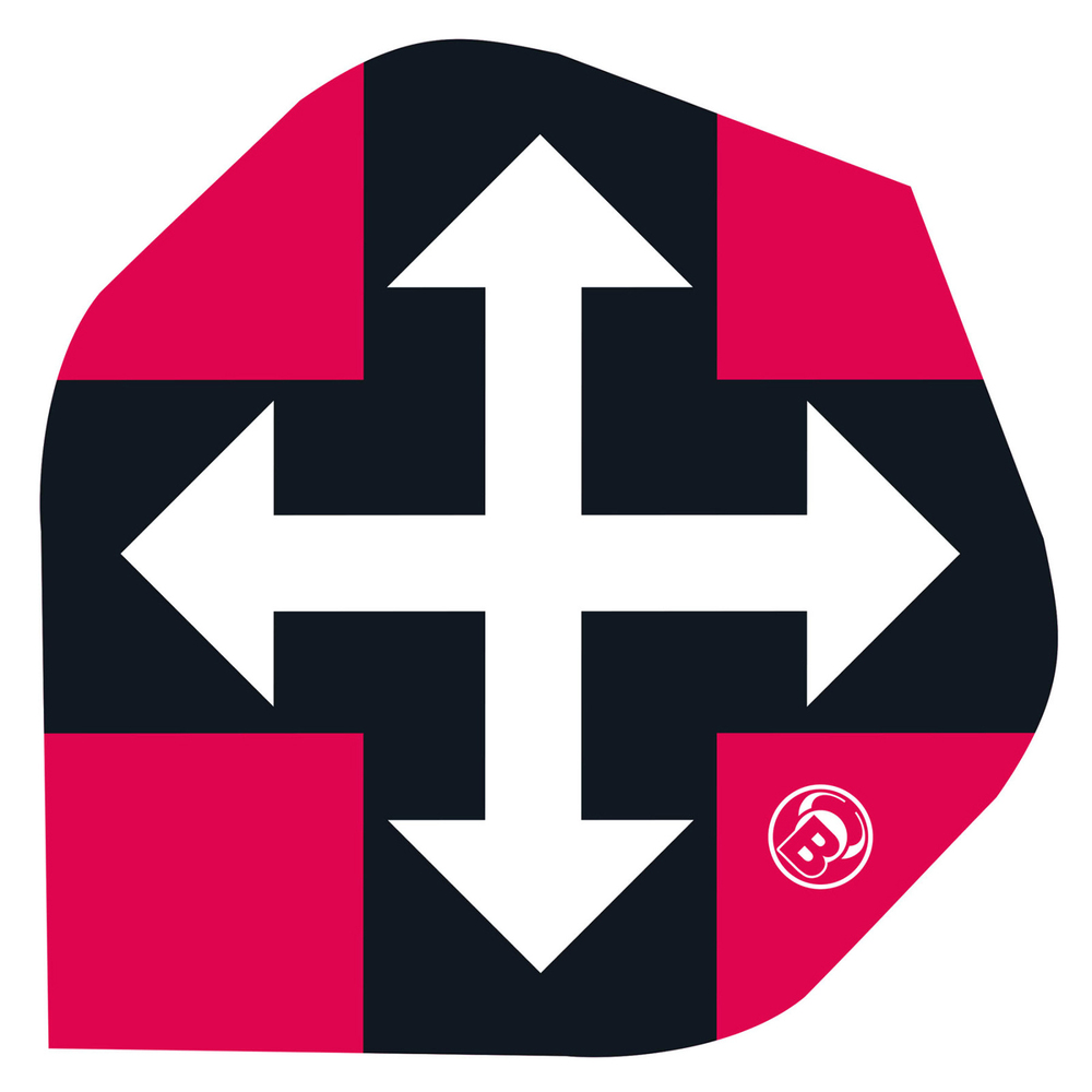 Der Sixty Metrixx Flight überzeugt mit 150 Mikron Materialstärke für maximale Stabilität und Haltbarkeit. In A-Standard Form designed, sorgt er für optimalen Flug und ruhige Flugbahn. Vier große weiße Pfeile, umgeben von einer klaren Blockaufteilung in Schwarz und kräftigem Pink, prägen das markante Design. Unten rechts das feine BULL'S Logo. Ein Flight mit auffälliger Optik und robuster Bauweise.