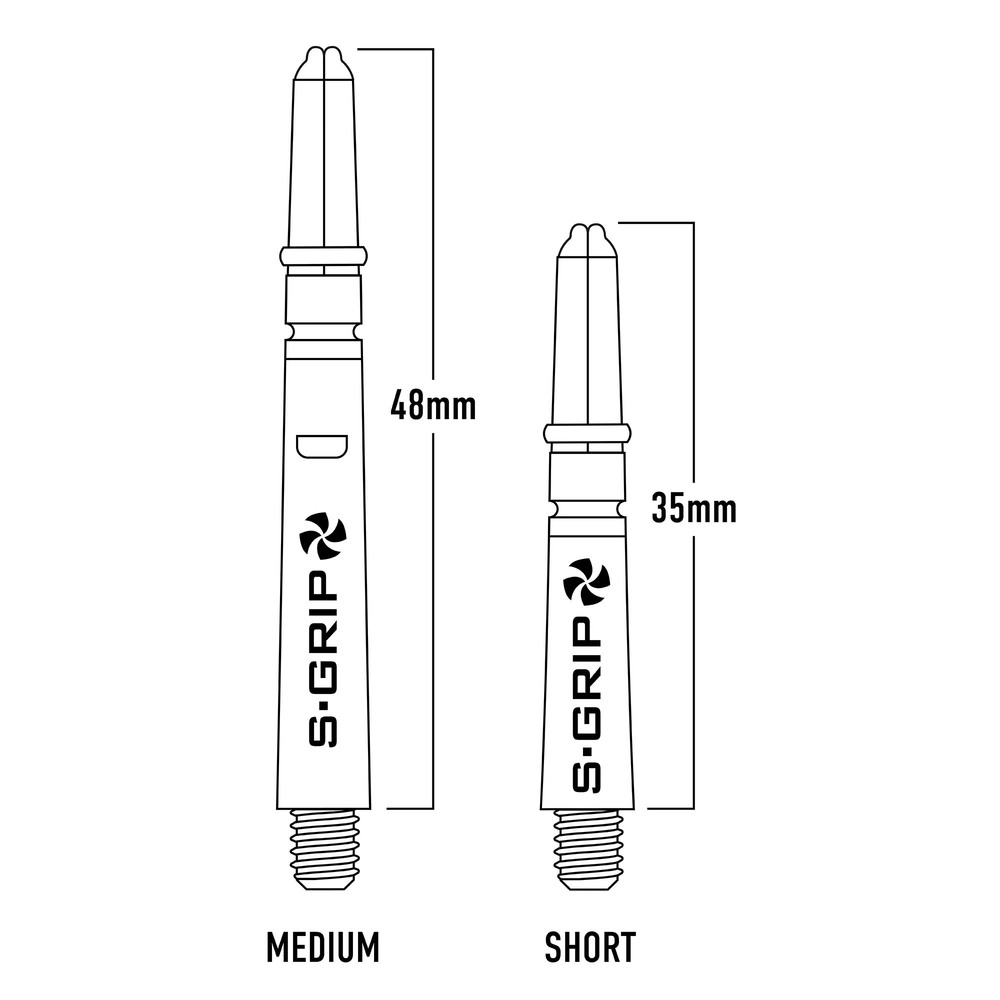 Die beliebten Harrows Supergrip Spin Shafts von Harrows verfügen über ein fest rotierendes Top, das sich dreht, wenn ein nachfolgender Dart den Flight berührt. Dadurch werden Ablenkungen und Abpraller reduziert, während der vormontierte Ring den Flight sicher fixiert. Erhältlich in Medium (48 mm / 1,1 g) und Short (35 mm / 0,8 g). Inhalt: 1 Set mit 3 Shafts.
