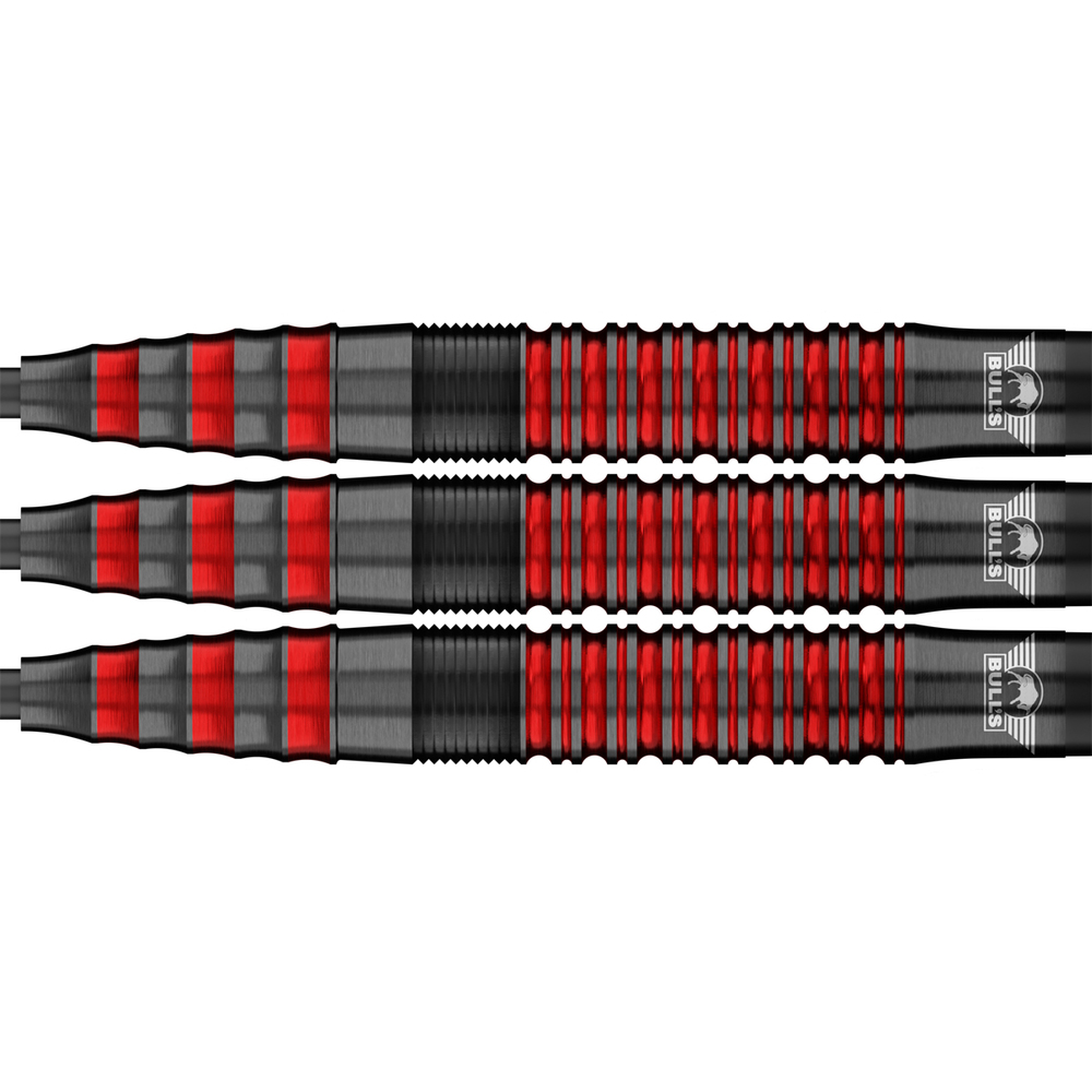 Erhältlich in 20 g und 23 g bieten die Darts eine vielseitige Gewichtsauswahl. Das gerade Barrel mit leicht verjüngtem hinterem Bereich unterstützt eine stabile Handposition und ermöglicht einen sauberen, kontrollierten Release. Der mehrzonige Ringgrip mit roten Akzenten verbessert die Griffigkeit und sorgt für gleichbleibende Kontrolle bei jedem Wurf. Mit einer Barrel-Länge von 48 mm und progressiv abgestuften Durchmessern bietet das Modell zudem individuelle Anpassungsmöglichkeiten im Griffbereich.